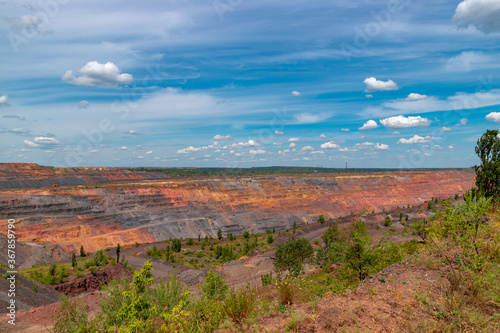 Ukraine, Krivoy Rog, unique place called "Ukrainian Mars". Waste rocks create multicolored mosaic. Open mine site with rare earth materials.