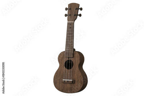 Ukulele, wooden hawaiian acoustic string instrument, standing on transparent background, conveying music and relaxation theme