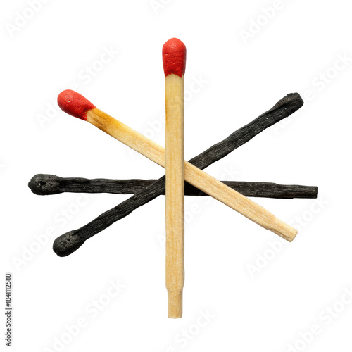 matchstick, burnout, contrast, charred, macro, pristine, spent, abstract, comparison, wood, ash, sulfur, texture, black, red, closeup, minimalism, white, background, photorealistic, fragility, exhaustion, conceptual, metaphor, support, studio, lighting, sharp, detailed, photo, charcoal, brittle, grain, new, old, geometry, perpendicular, symbol, contemplation, stark, object, stick, fire, idea