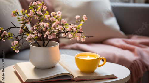Un bouquet de fleurs égayant la table du petit-déjeuner, accompagné d'une tasse de thé chaud, crée une ambiance printanière et accueillante.