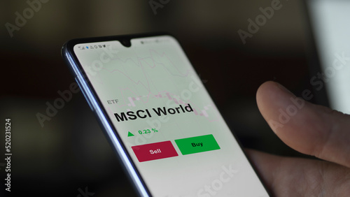 Un investisseur analyse un fonds etf msci world sur un graphique. Un téléphone affiche le cours de l'ETF MSCI World