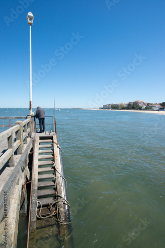 southwest, ocean, pier, breakwater, stair, sea, water, heaven, view, silhouette, fishing