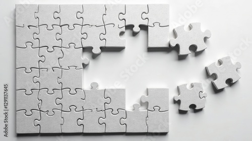 Unassembled White Jigsaw Puzzle Pieces on a Plain Surface, Representing Challenges and Problem Solving