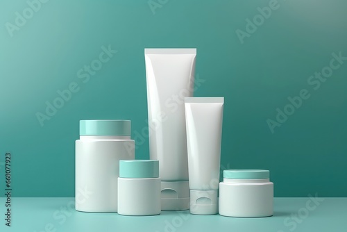 unbranded, cosmetic, cream, jar, tube, arranged, turquoise, background, cardboard box, skincare, beauty, cosmetic, container, lotion, moisturiser, empty, storage, display, arrangement, aesthetic, sale, promotion, marketing, attractive, beauty product, professional, minimalistic, organised, vibrant