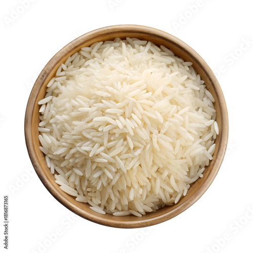 Uncooked white basmati rice in a wooden bowl isolated on transparent background PNG