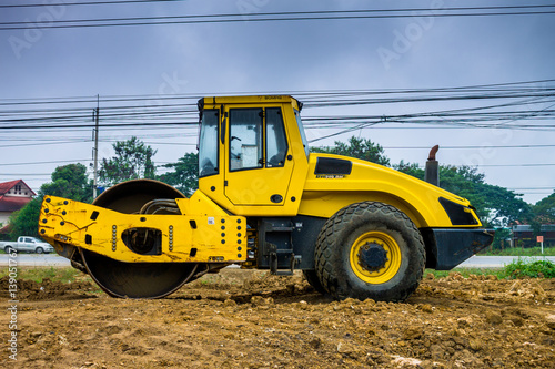 under construction, backhoe, car, compress, concrete, construction, flatten, gravel, ground, hardness, landscape, machinery, material, parking, road, route, transportation, vehicle