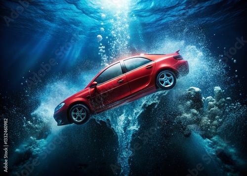 Underwater Car Crash: Drowning Vehicle, Unsafe Driving - Night Stock Photo