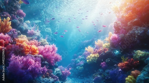Underwater view of a colorful coral reef with fishes, showcasing the ocean ecosystem