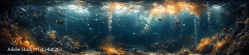 Underwater World with Marine Life Amid Chemical Slicks. Generative AI