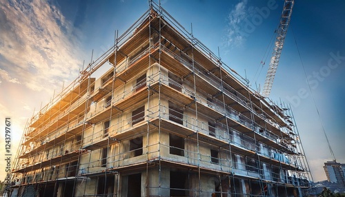 building, construction, architecture, scaffolding, city, structure, house, sky, urban, business, skyscraper, facades, new, site, crane, build, work, exterior, concrete, scaffold, office, apartment, old, tower, development