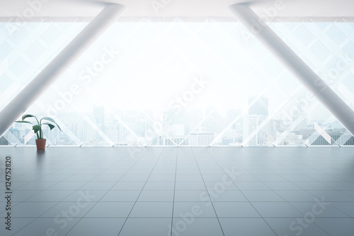 interior, nobody, bright, daylight, three-dimensional, rendering, render, illustration, loft, real, estate, apartment, architecture, room, design, inside, indoor, window, sunlight, floor, wall, ceiling, clean, contemporary, modern, empty, business, office, home, house, residential, light, living, lifestyle, building, construction, flat, new, domestic, city, view, tile, column, decorative, plant, pot, front, front view, concrete