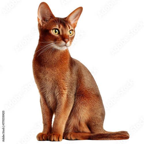 Unique Brown Tabby Cat Sitting Gracefully on a Clean White Background