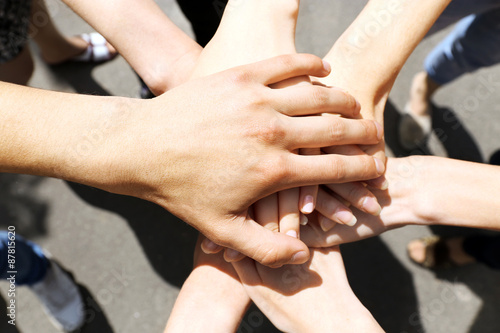 agreements, arm, asphalt, business, closeup, community, concept, conceptual, connect, connection, corporate, energy, finger, friends, friendship, game, group, hand, hand, handshake, help, holding, man, many, networking, outdoors, over, part, person, play, protection, relationship, share, social, strength, strong, success, support, symbol, team, teamwork, teenage, together, togetherness, top, touch, united, view, woman, youth