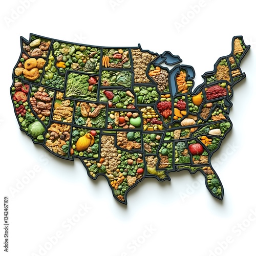 map, us, vegetable, fruit, food, country, healthy, diet, nourishment, america, us, grain, cookery, region, produce, agriculture, eating, geography, shape, culinary, grocery, market, local, organic, dietary, vitamin, fiber, fresh, harvest, meal, portion, plant, ingredient, resource, geographic, symbol, still life, art, studio shot, white background