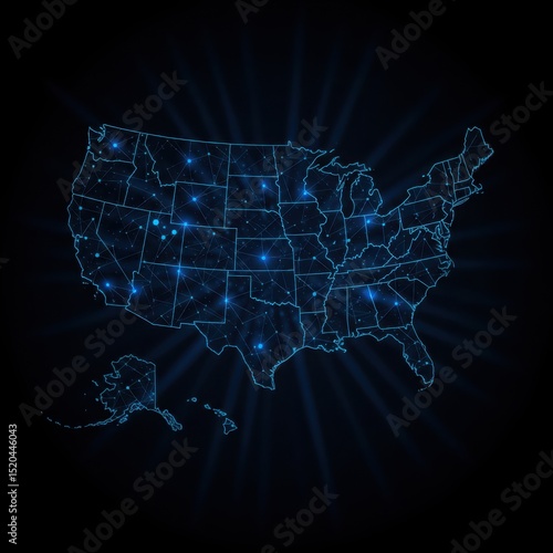 us, map, state, united, america, country, nation, border, alaska, hawaii, contour, glowing, dot, connection, network, digital, technology, futuristic, outline, shape, geography, land, territory, region, federal, nationwide, continental, political, structure, grid, system