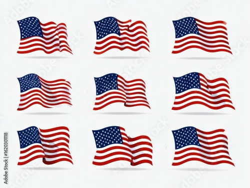 United states of america flag . Set of wavy US flag on isolated white background . Vector .