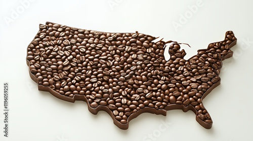 hot drink, bean, map, america, united, state, us, roasted, brown, dark, grain, caffeine, espresso, brewing, drink, beverage, food, chocolate, country, nation, continent, geography, shape, contour, outline, illustration, design, art, creative, visual, composition, texture, surface, still life, photo, image, studio, background, white