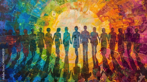 diversity, oneness, people, silhouette, colourful, global, community, mosaic, inclusion, humanity, social, equality, togetherness, culture, digital artwork, abstract, society, harmony, earth, population