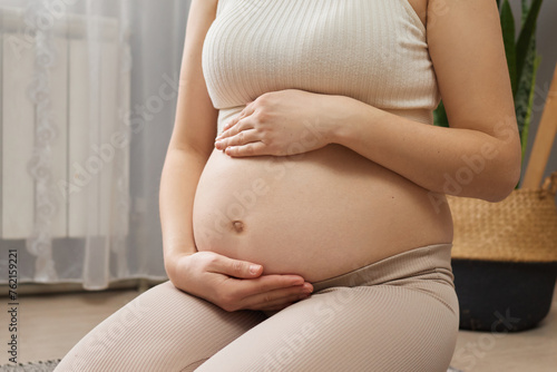 health, tummy, living room, baby, top, maternity, unrecognizable, female, life, comfortable, expecting, unknown, lifestyle, healthy, pregnant, touch, gentle, person, fun, pregnancy, care, new life, mother, stomach, love, abdomen, belly, parenthood, hand, happiness, children, woman, bare, anticipation, leggings, floor, motherhood, closeup, sitting, beautiful, mother, indoor, newborn, eltern, home