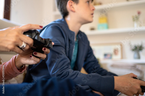 amusement, anonymous, apartment, home, blur, boy, console, controller, couch, crop, device, entertain, faceless, flat, free time, funny, game, gamer, hobby, home, indoor, interest, joystick, leisure, lifestyle, living room, mother, mother, motherhood, parenthood, pastime, play, player, room, sofa, son, spare time, teenage, teenage, together, unrecognizable, using, video game, woman