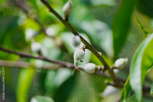 peach, leaf, fruit, tree branch, green, fresh, nature, food, organic, tree, agriculture, fruit farm, harvest, ripe, healthy, summer, natural, sweet, closeup, garden, plant, delicious, peach tree, vitamin, growth, background, farm, season, freshness, produce, raw, flora, growing, foliage, outdoors, beauty, blossom, grow, spring, fresh fruit, ripening, blue, little, ripen, sakura, unripe, young, small, space