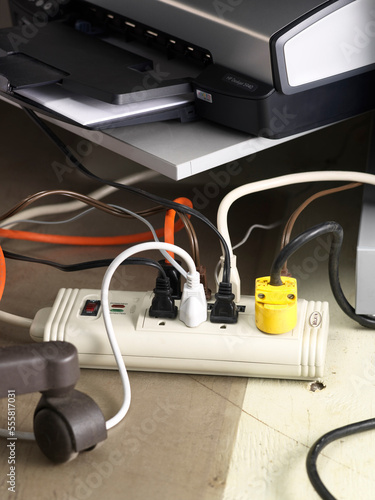 home, business, office, computer, closeup, dangerous, safety, image, interior, mains outlet, picture, floor, photograph, cord, electronic, plug, device, overload, still life, home office, object, power, nobody, indoor, full, off, energy, small business, color image, je, color photography, mark