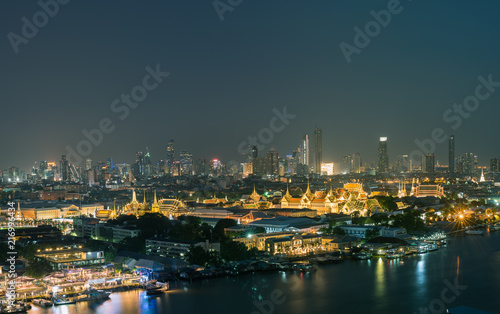 Unseen thailand nigth panorama view The Grand palace in bangkok ,Thailand