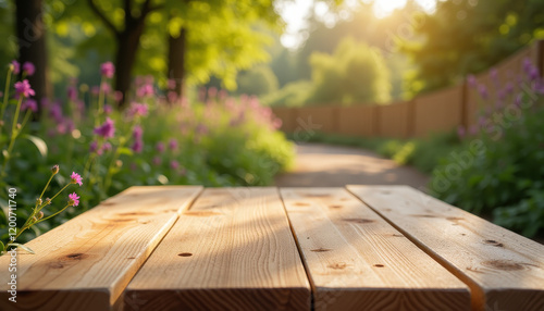 Untreated wood table outdoors in sunlight