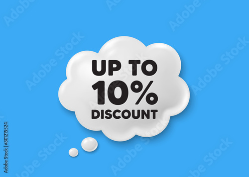 Up to 10 percent discount tag. Comic speech bubble 3d icon. Sale offer price sign. Special offer symbol. Save 10 percentages. Discount tag chat offer. Speech bubble comic banner. Vector