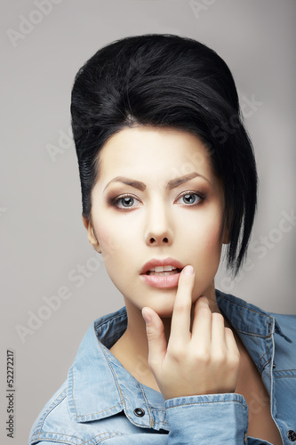 coiffure, haircut, hairdresser, forelock, updo, jean, coiffure, coiffure, brunette, hair, fringe, beautiful, woman, caucasian, hand, black, face, fashion, open, coiffure, purebred, young, eroticism, make-up, studio, lip, romantic, modern, touch, mouth, shiny, make-up, stylish, style, shirt, adult, teeth, posh, salon, attractiveness, jacket, glamour, authentic, trendy, person, genuine, people, teenage