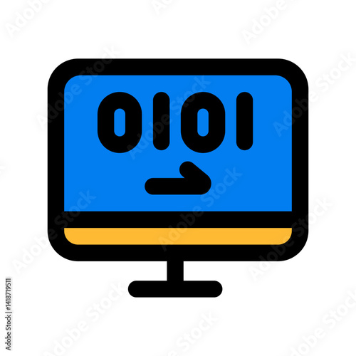 blue, yellow, outlined, program, binary, monitor, artificial intelligence, network, technology, futuristic, digital, ai, development, intelligence, innovation, tech, smart, science, future, cyberspace, simple, icon, computer, information, datum, communication, analysis, web, software, modern, system, automation, online, cyber