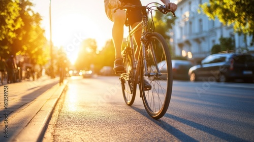 Urban cyclist in golden sunlight