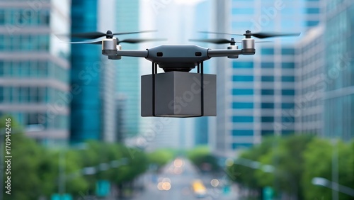 urban, delivery, drone, package, city, modern, technology, innovation, logistic, automation, transport, flying, automated, commercial, shipping, parcel, remote, autonomous, smart, sky, express, efficiency, service, convenience, digital, e-business, revolution, business, industrial, ai, robotic, futuristic, aerial, connected, high technology, metropolis, town, downtown