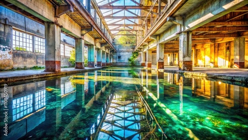 Urban Exploration of Clear Transparent White Water Surface Texture in Abandoned Cityscapes, Reflections and Patterns Captured in Urban Environments, Serenity Amidst Decay