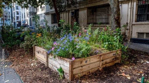 urban, garden, bed, flower, plant, vibrant, colours, city, street, community, nature, wooden, box, raised, dirtied, growth, beauty, healthy, fresh, life, sustainable, eco, friendly, detail, closeup, freshness, biodiversity, colourful, variety, blooming, natural, creative, organic, gardening, tree, housing, neighbourhood, green, space, resilience, home