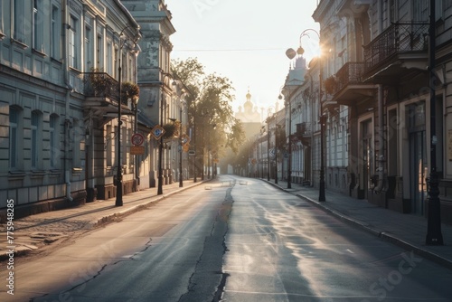 city, street, sunset, urban, empty, evening, dusk, city landscape, building, architecture, skyline, downtown, twilight, deserted, quiet, peaceful, serene, tranquil, modern, metropolitan, scenery