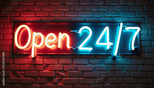 neon sign, brick wall, urban, moody, atmospheric, night, lighting, signs, wall, brick, red, business, building, neon, street, london, city, graffiti, open, illustration, brick, old, light, architecture