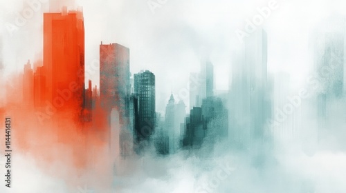 Urban Skyline Abstract Art with Fog and Colorful Accents