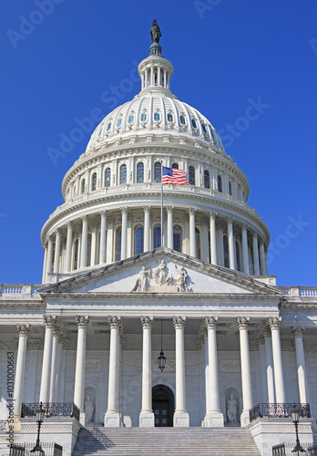 architecture, capitol, american flag, waving, congress, government, capital, us, freedom, senate, flag, day, blue, sky, dome, art, tour tourism, travel, white, red, power, federal, symbol, american, house, politic, democracy, majestic, tall, high, landmark, city, building, famous, stair, colourful, sunny, column, lateral, marble