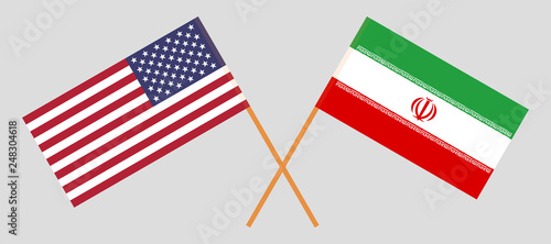 USA and Iran. The United States of America and Iranian flags. Official colors. Correct proportion. Vector