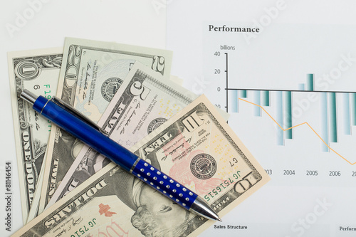 USA dollar money banknotes and pen