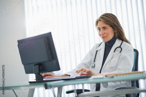 USA, New Jersey, Jersey City, Female doctor using computer in office
