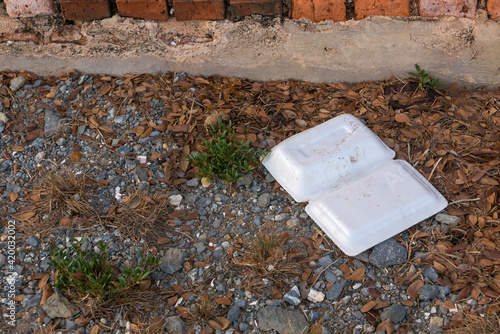 Used foam food container had been throw on the ground. Environmental problem.