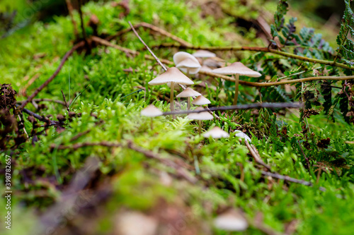 utrechtse heuvelrug. Some beautiful mushrooms on some moss in the fall forest, the do not eat GALERINA MARGINATA