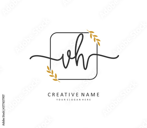 V H VH Initial letter handwriting and signature logo. A concept handwriting initial logo with template element.