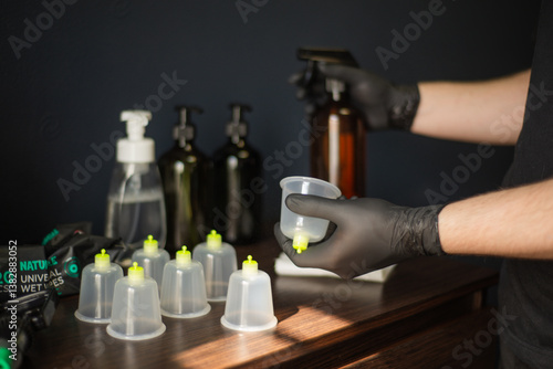 Vacuum cups for massage, processing.