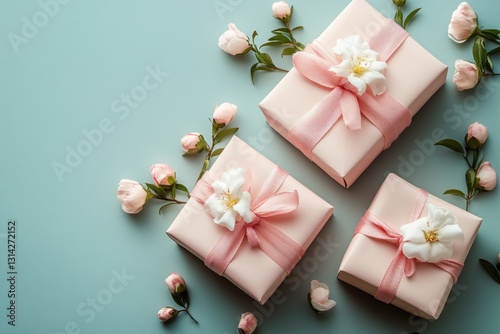valentine, gift, pink, rose, bud, beige, background, topview, happy, valentine, day, card, gift, anniversary, flower, celebration, elegant, design, wedding, romantic, minimal, pastel, ribbon, bow, present, surprise, table, style, love, holiday, copy space, decoration, composition, template, february 14, white, banner, smooth, bright, natural, light, modern, still life, concept, mother, birthday, international, saint, st