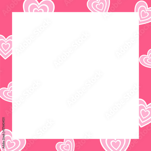 Valentine square frame. Heart patterns on pink frame. Valentines greeting card