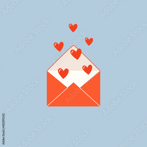 Valentines day concept illustration. A red envelope with cute red hearts. Love letter for banner, card, greetings. Trendy vector illustration in cartoon flat style.