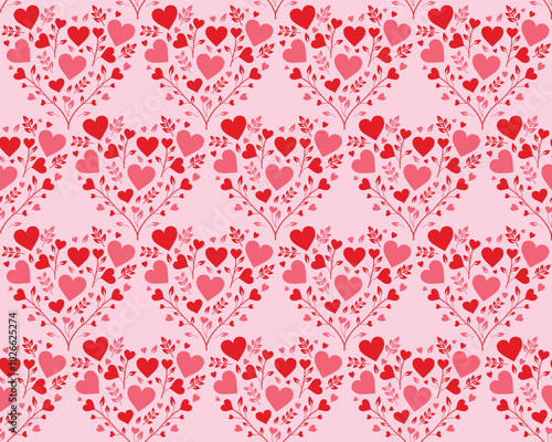 nubes, love, pattern, floral, seamless, valentine, repeating, romantic, red, pink, flower, leaf, romance, february 14, seamless pattern, elegant, affection, minimalist, heart, illustration, vector, flower, design, wallpaper, art, texture